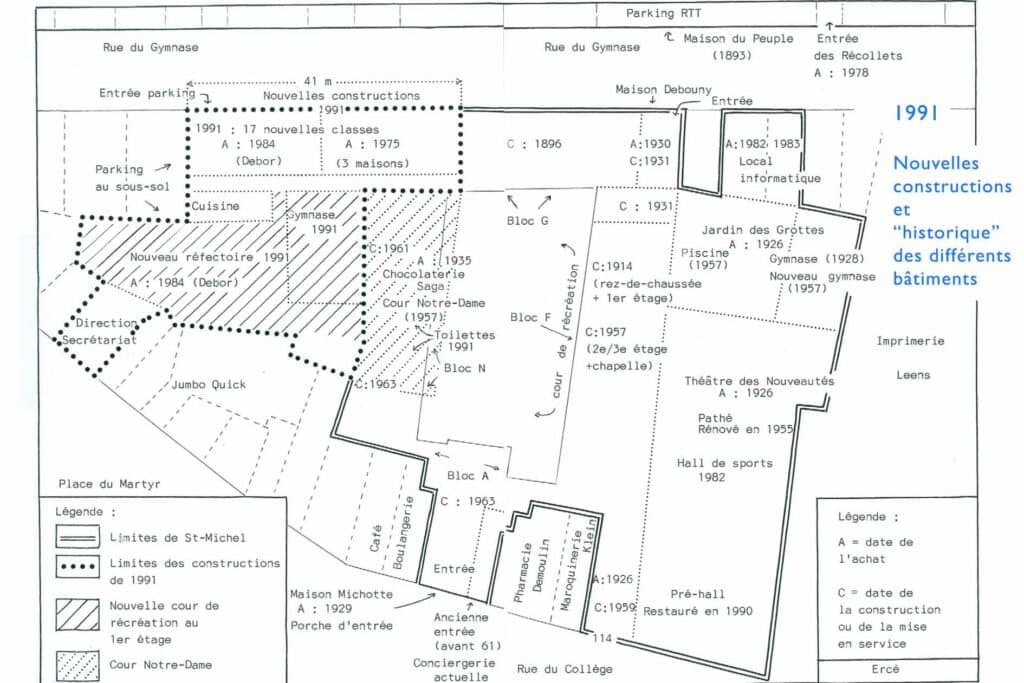 En parcourant les photos de l’album ci-dessous, classées chronologiquement (sauf pour permettre parfois une comparaison avec la situation actuelle), vous pourrez découvrir l’évolution des bâtiments sur une centaine d’années.