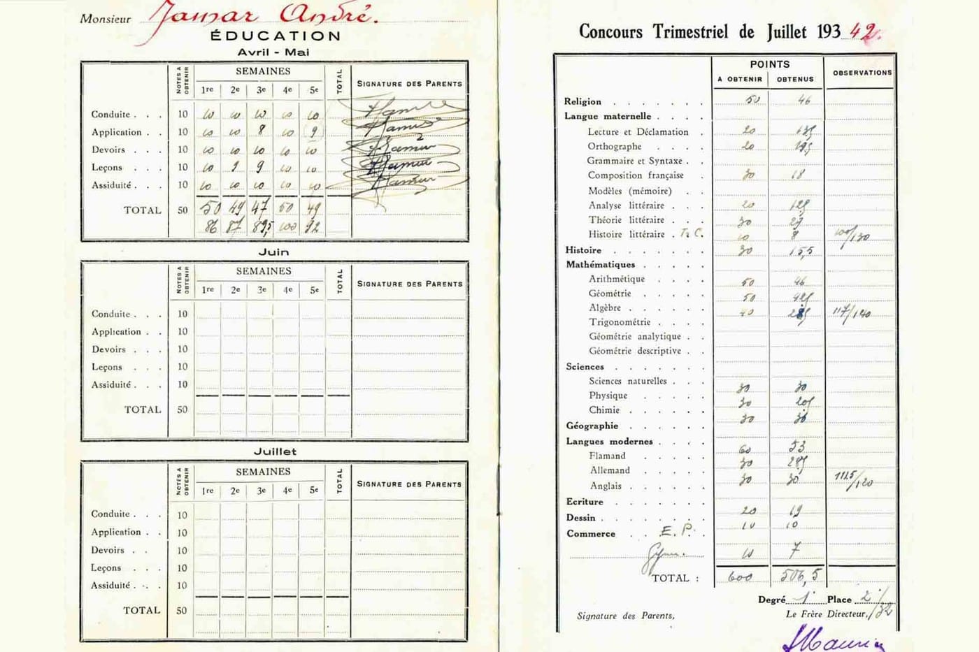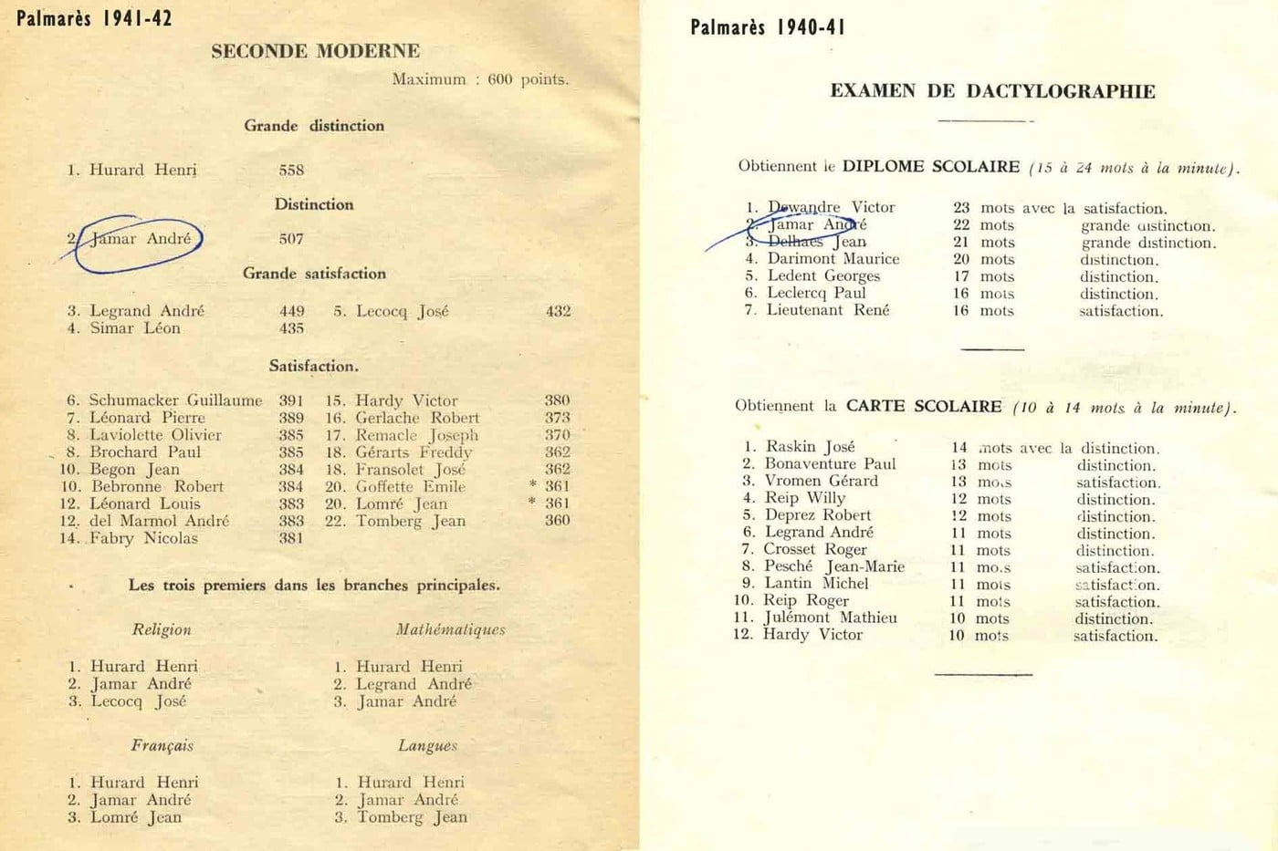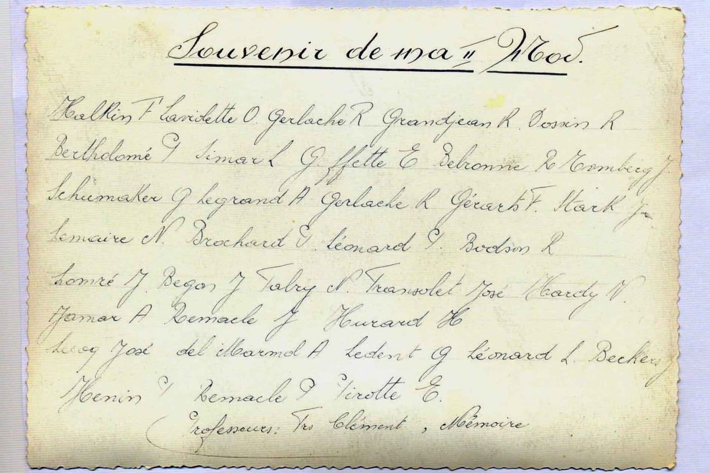 « Je suis un « Ancien » ayant terminé la Rhétorique en 1943… et suis toujours sur cette planète à l’âge de 90 ans, ainsi qu’un autre condisciple : Joseph Remacle. Nous sommes les deux seuls survivants.