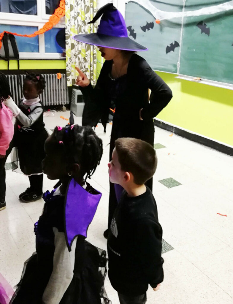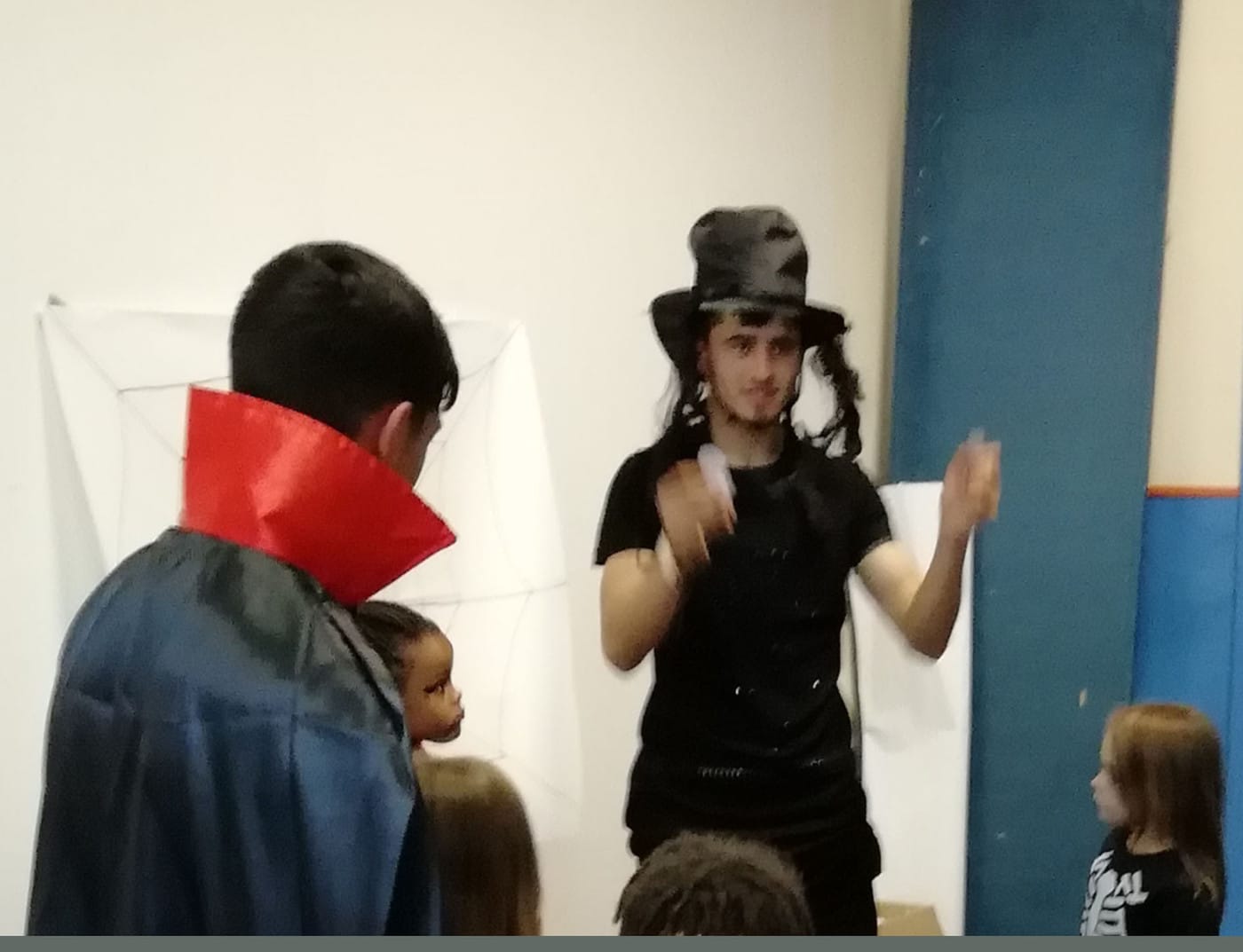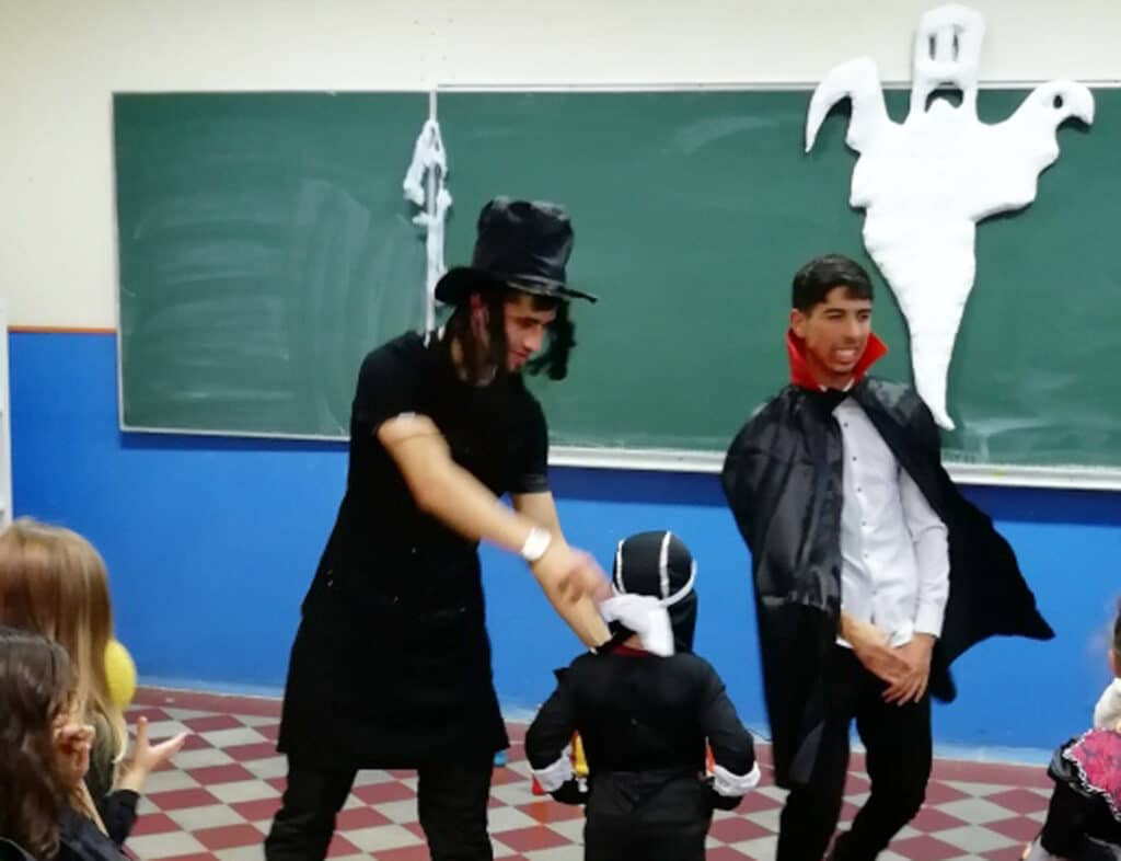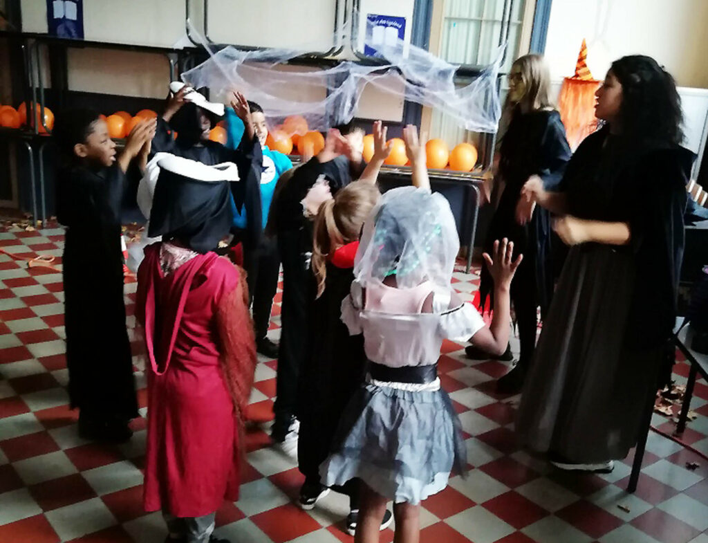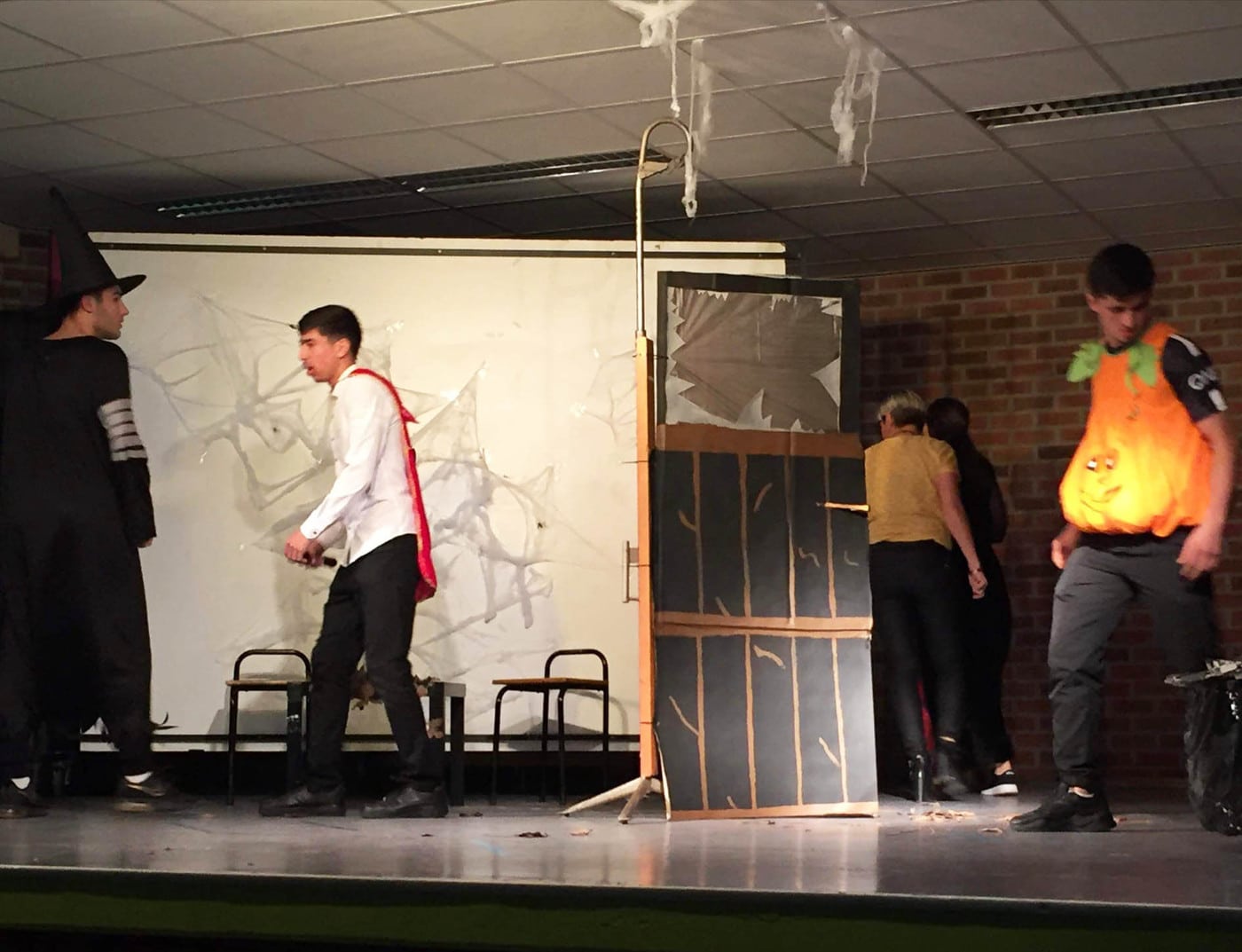 Il s’agit pour nos élèves d’une toute première animation, et d’un premier contact avec les enfants. Ils ont passé plus d’un mois à préparer méticuleusement cette activité dans le cadre de leurs cours d’option. Ils ont réalisé tous les décors, ont créé une histoire sur le thème, ont imaginé des jeux et les ont présentés activement aux enfants. Ils ont ensuite terminé la soirée par l’animation du bal d’Halloween où ils ont dansé avec les enfants.