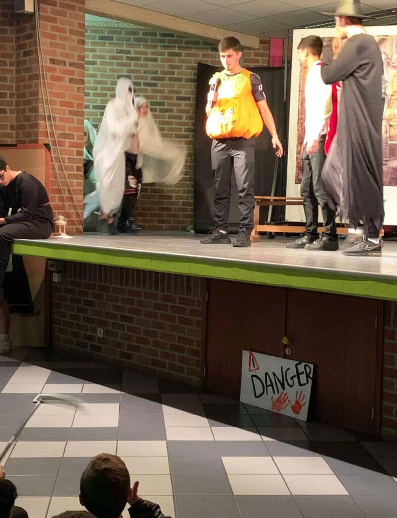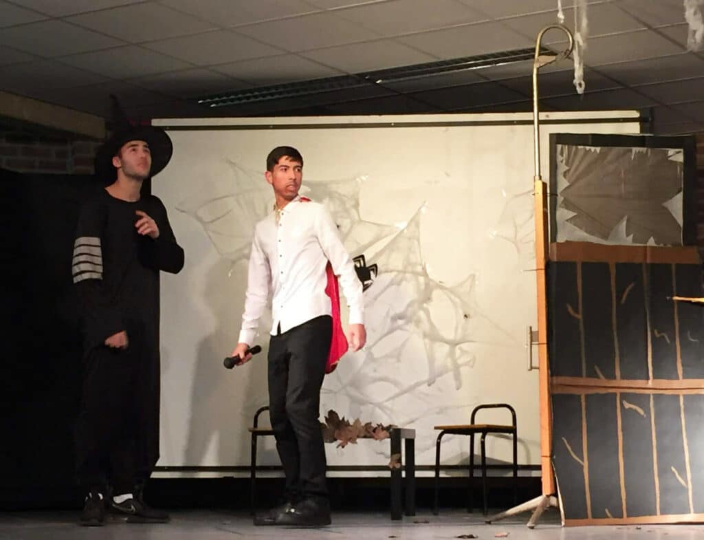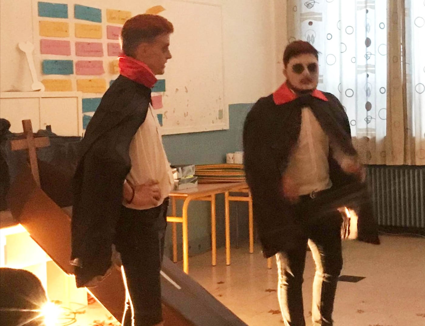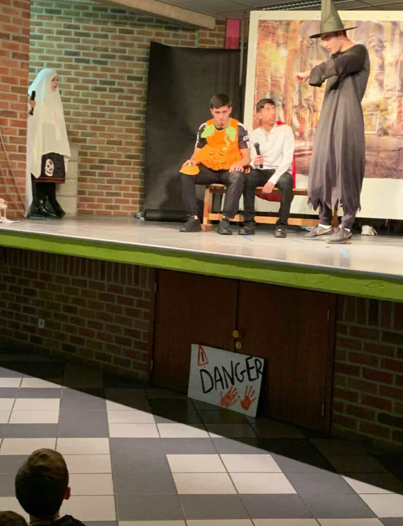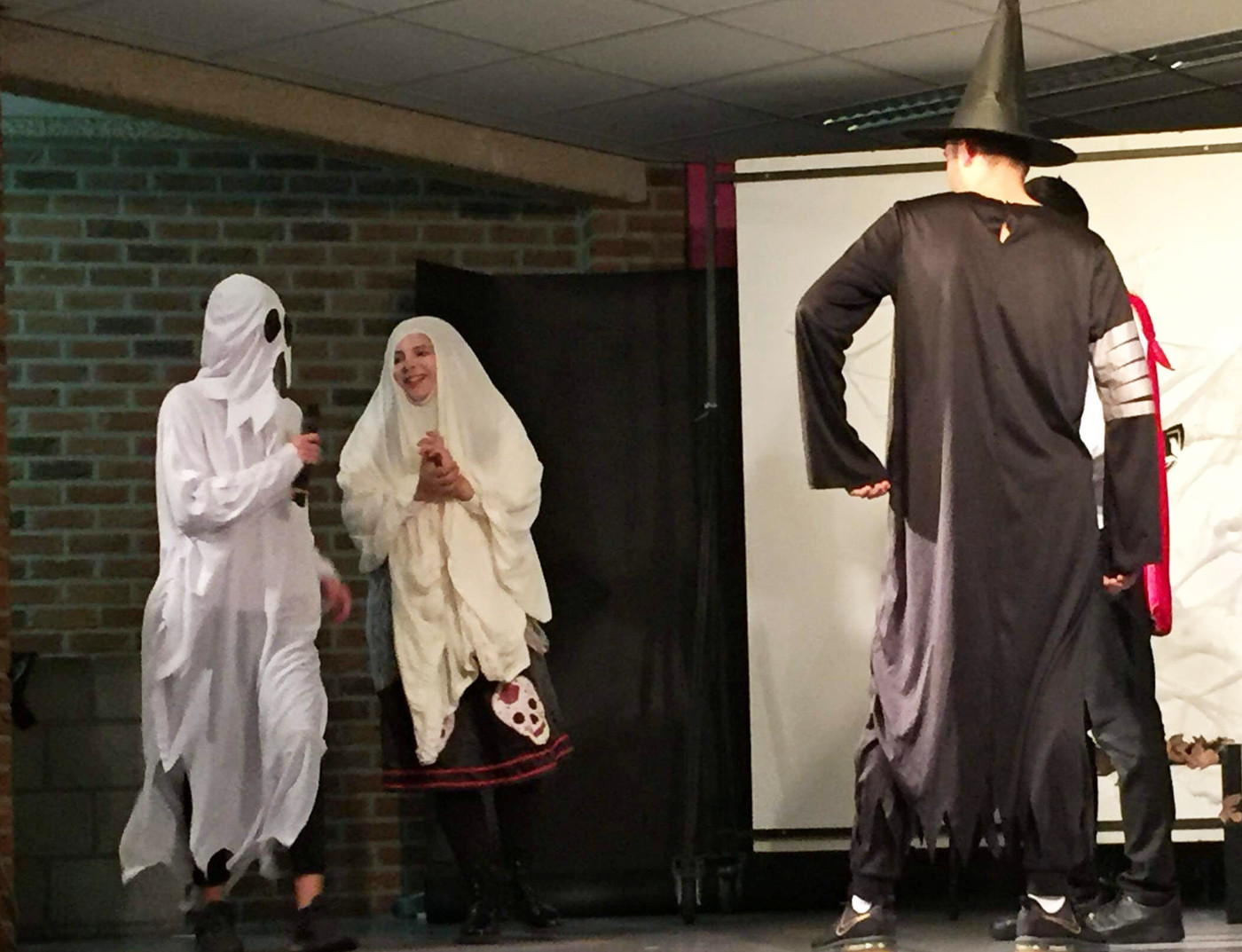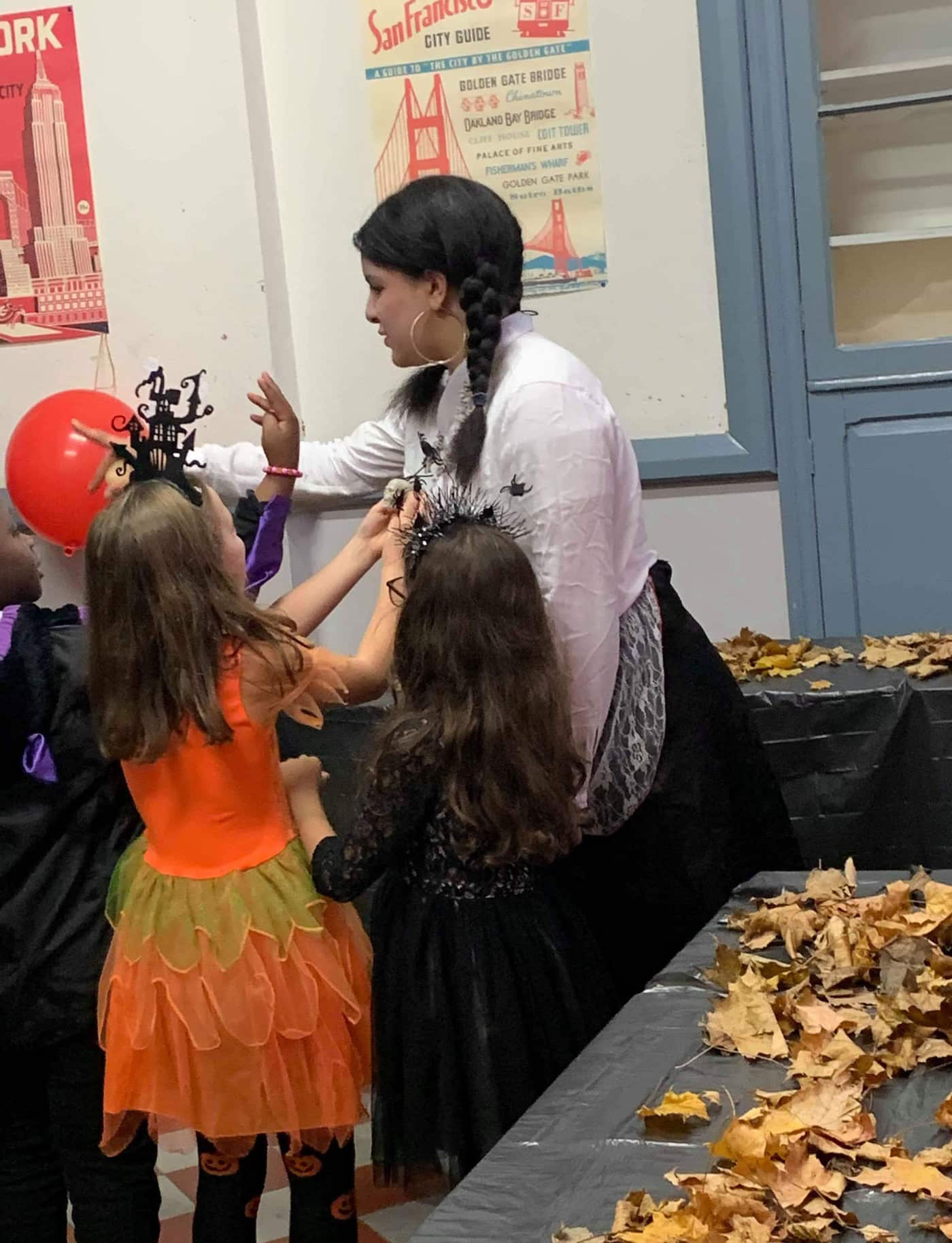 Il s’agit pour nos élèves d’une toute première animation, et d’un premier contact avec les enfants. Ils ont passé plus d’un mois à préparer méticuleusement cette activité dans le cadre de leurs cours d’option. Ils ont réalisé tous les décors, ont créé une histoire sur le thème, ont imaginé des jeux et les ont présentés activement aux enfants. Ils ont ensuite terminé la soirée par l’animation du bal d’Halloween où ils ont dansé avec les enfants.