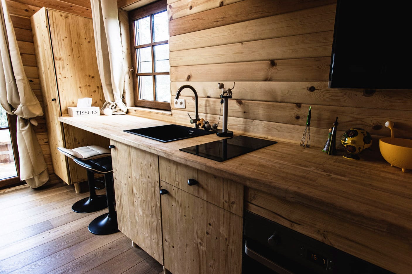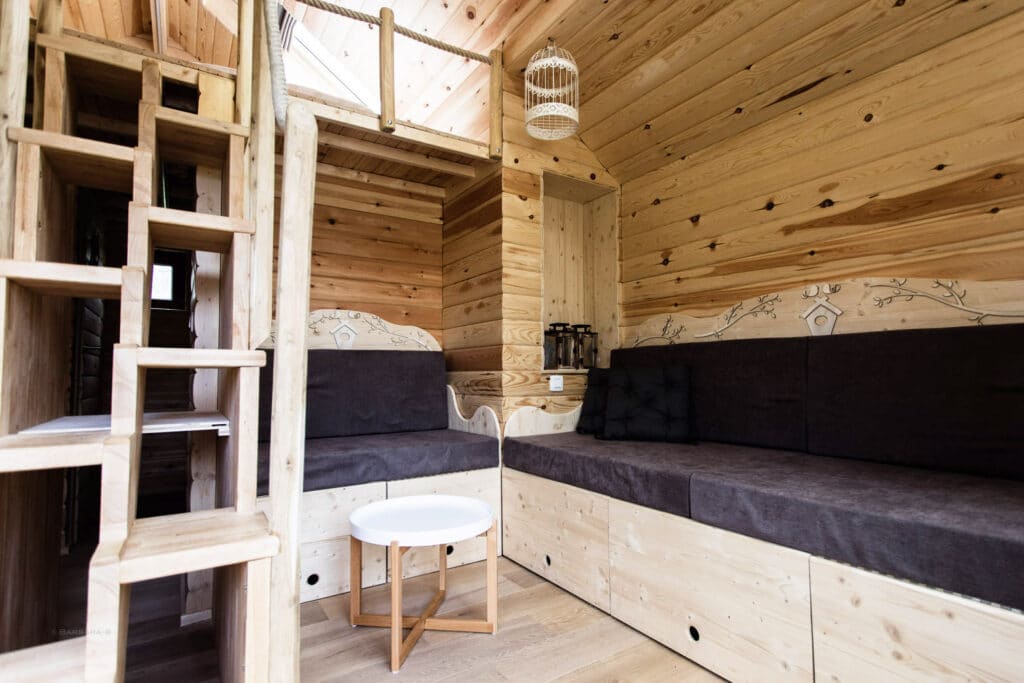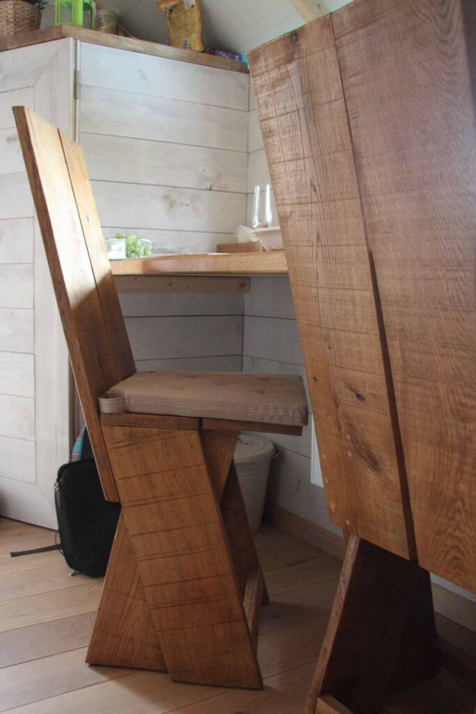 Avec Cabanade, il propose des créations uniques aménagées selon les envies du client. La cabane, comme celle visitée aujourd’hui, est conçue et construite de A à Z par lui-même (y compris les meubles)… jusqu’à la toiture végétale si le client le souhaite.