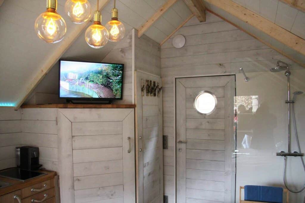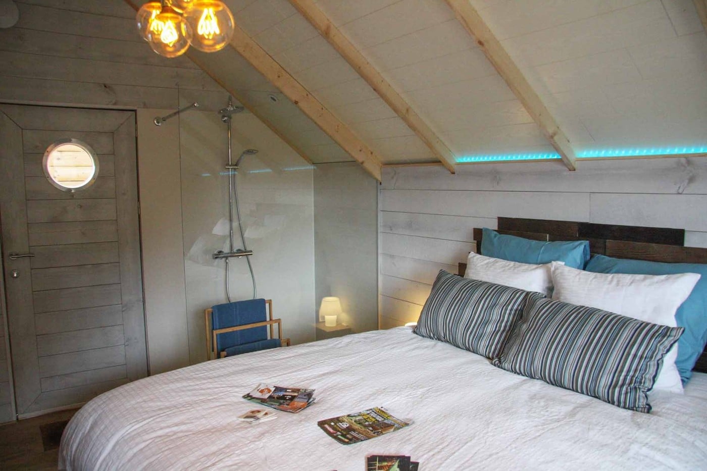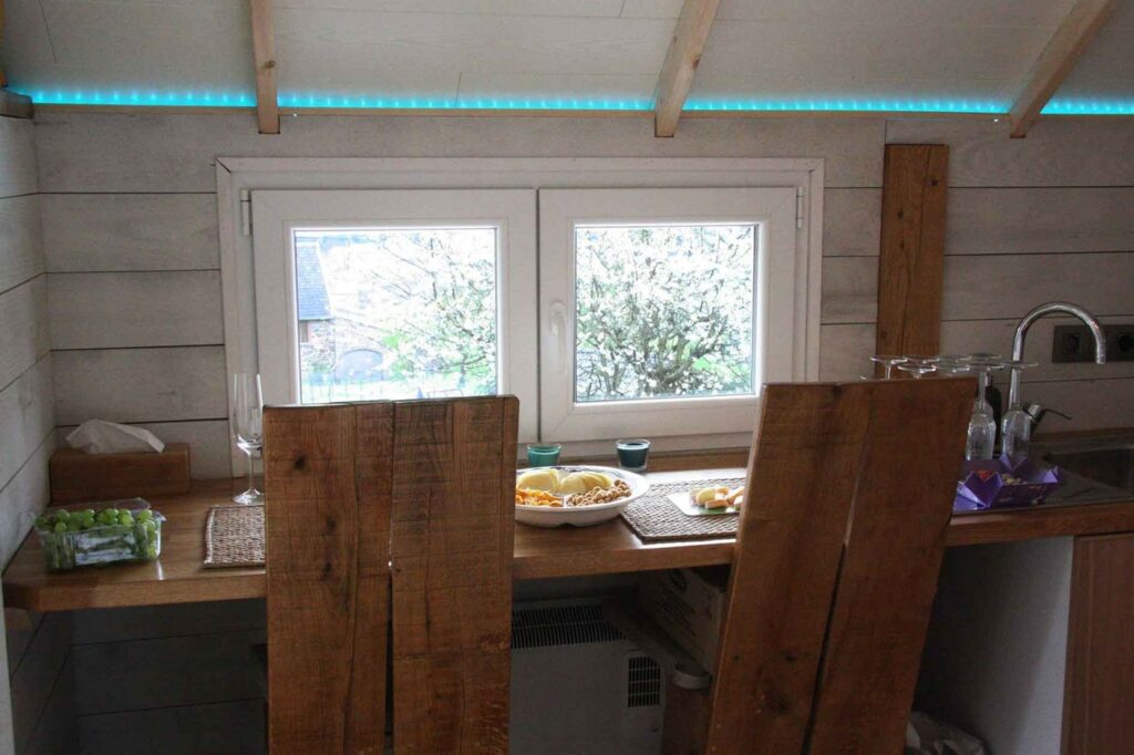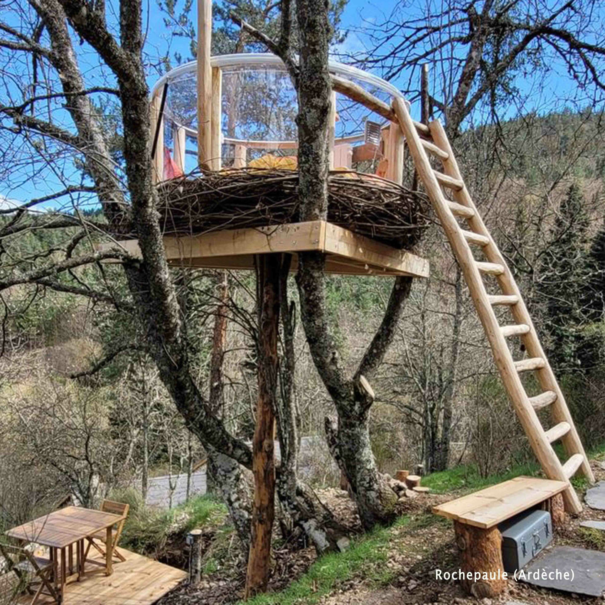 Avec Cabanade, il propose des créations uniques aménagées selon les envies du client. La cabane, comme celle visitée aujourd’hui, est conçue et construite de A à Z par lui-même (y compris les meubles)… jusqu’à la toiture végétale si le client le souhaite.