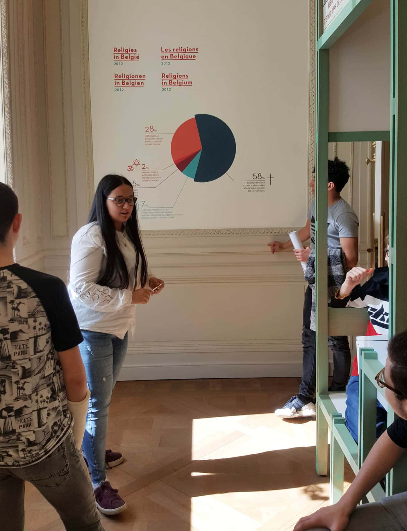 Après un agréable temps libre sur la Grand-Place de Bruxelles, ils se sont rendus au musée Belvue, qui aborde 7 thèmes, tels que la création de la Belgique et la démocratie, la prospérité, la solidarité, le pluralisme, les migrations (tant passées que actuelles), les langues, et enfin l’Europe.