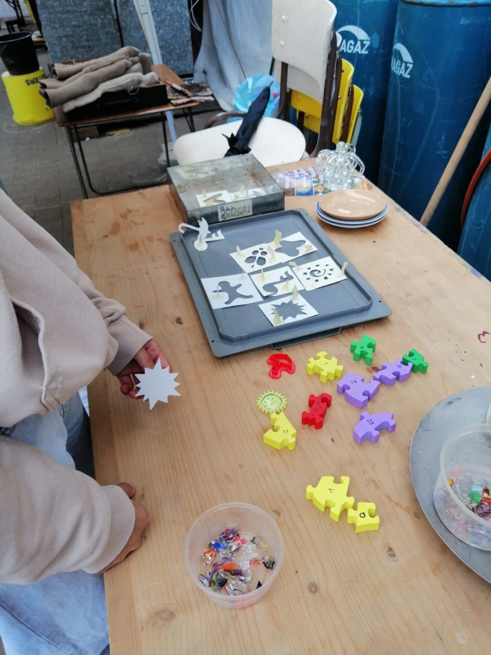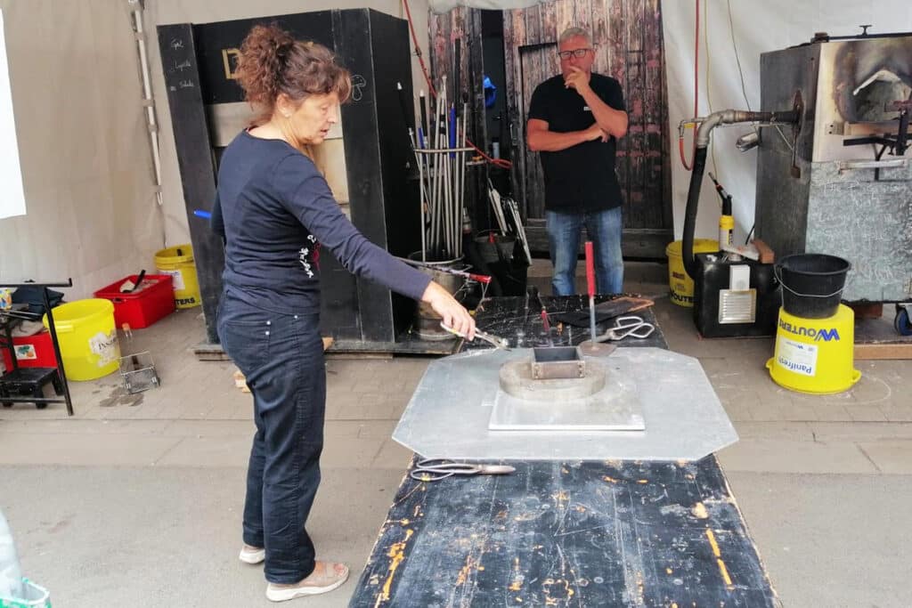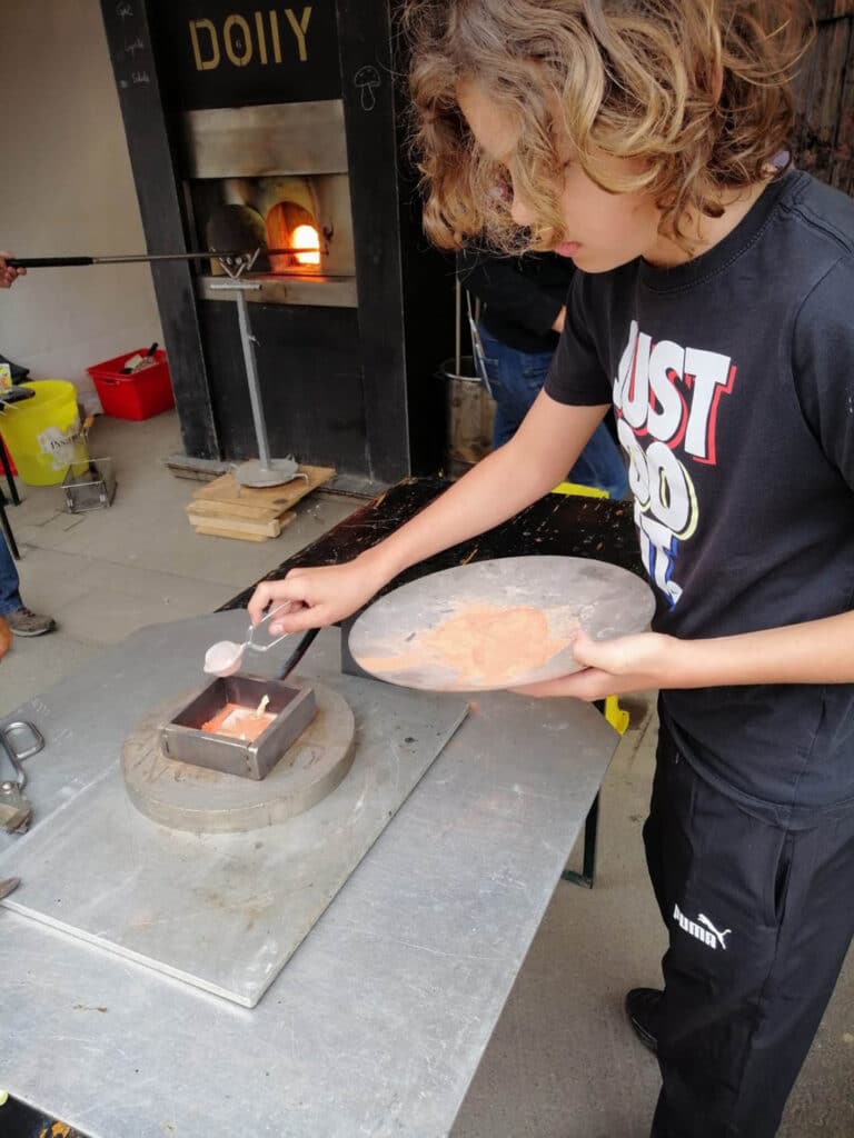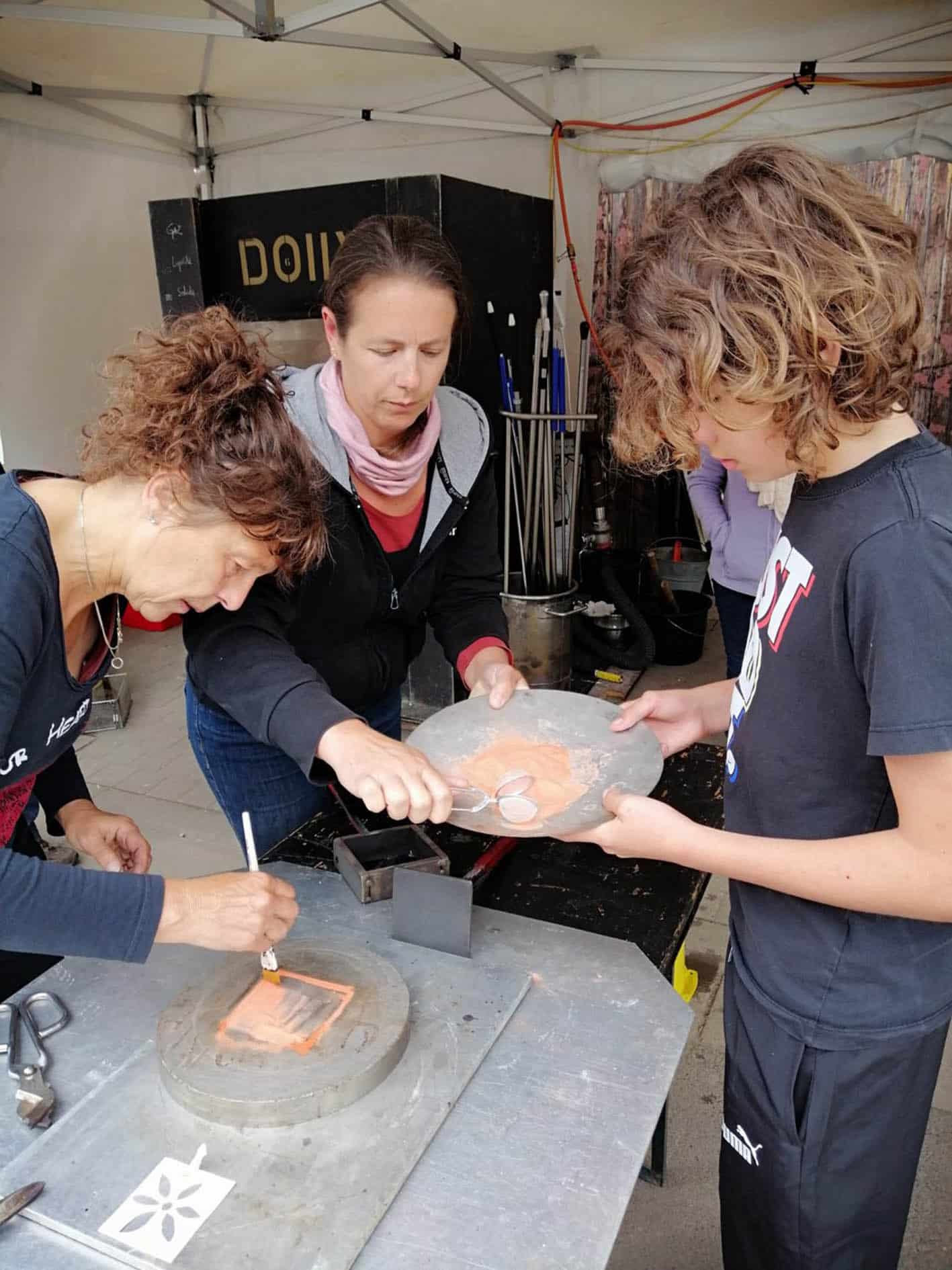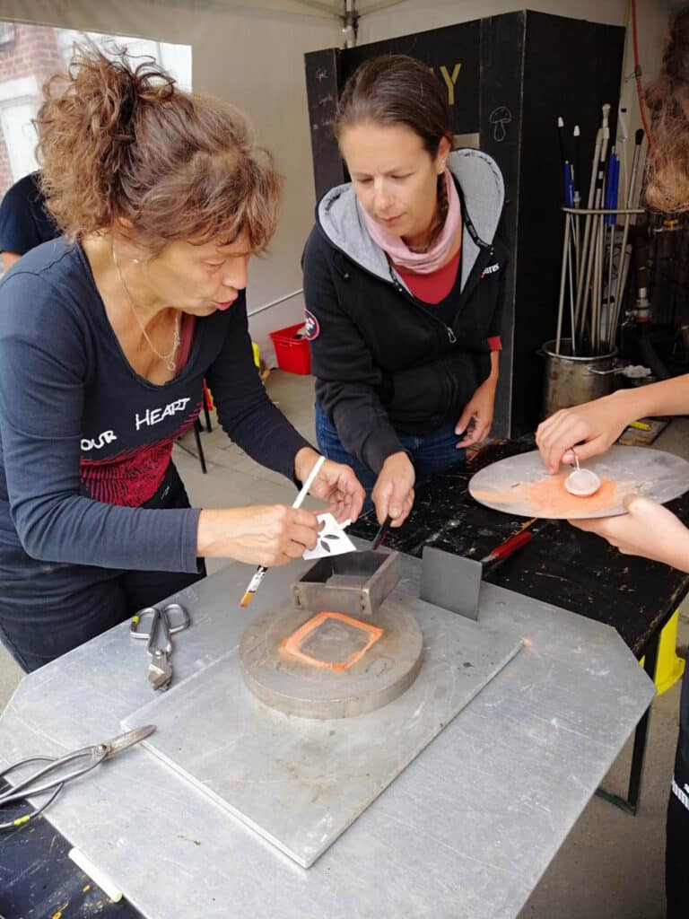 Ceux-ci se sont d’abord appliqués à découper des pochoirs pour les positionner ensuite dans le moule afin qu’un dessin apparaisse dans un pavé de verre.