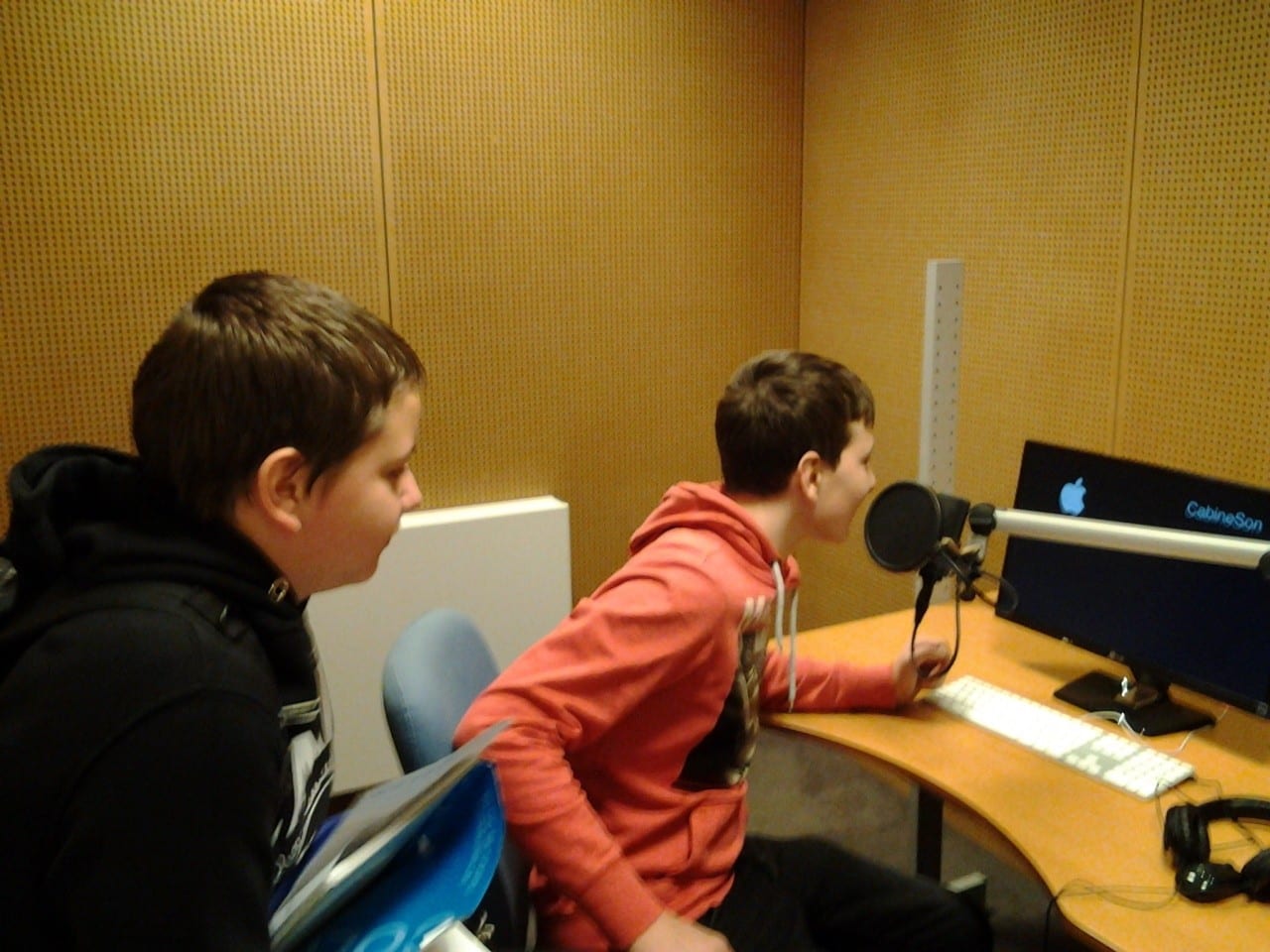 Nous avons aussi pu visiter la « cabine son » où les journalistes enregistrent leur voix pour les reportages, la rédaction ainsi que la régie, où se réalisent toutes les manipulations techniques.